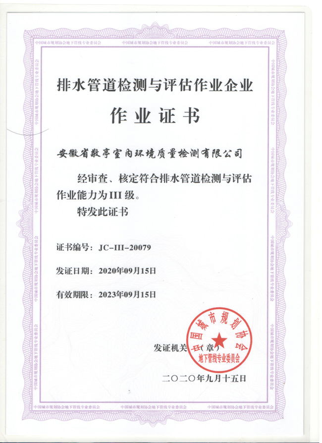 管道检测作业证书